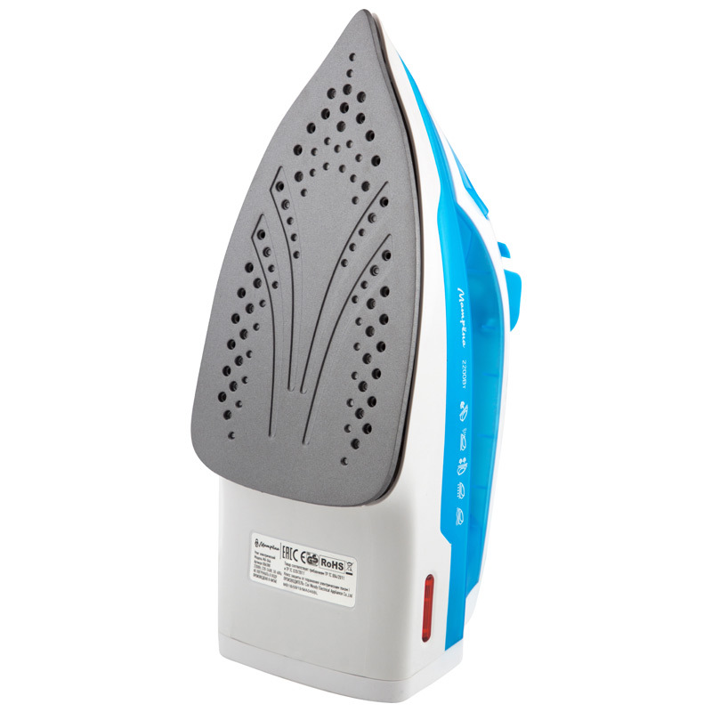 Мощность 2200Вт Подошва с тефлоновым покрытием Сухая глажка/спрей/пар/паровой удар/вертикальное отпаривание Индикатор нагрева Функция самоочистки Объем резервуара для воды 160 мл Регулировка подачи пара Шарнирное крепление шнура Длина сетевого шнура 1,5м Длина подошвы 18,4см Зауженный носик Защита от перегрева Мерный стакан в комплекте