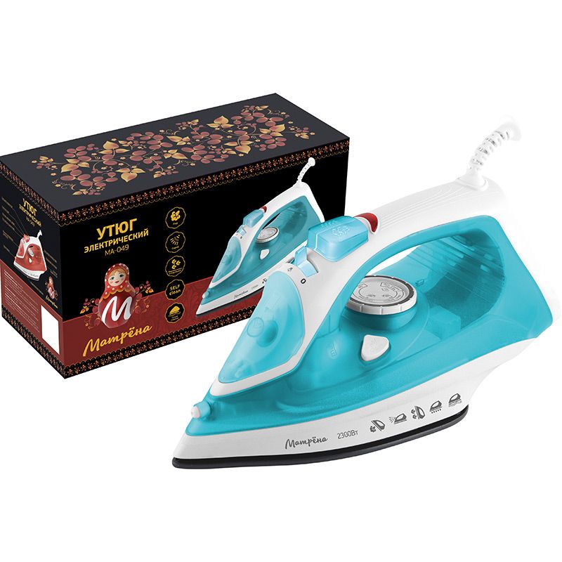 Мощность 2300Вт Подошва с керамическим покрытием Сухая глажка/спрей/пар/паровой удар/вертикальное отпаривание Индикатор нагрева Функция самоочистки Объем резервуара для воды 300 мл Регулировка подачи пара Шарнирное крепление шнура Длина сетевого шнура 1,5м Длина подошвы 21,2см Зауженный носик Защита от перегрева Мерный стакан в комплекте
