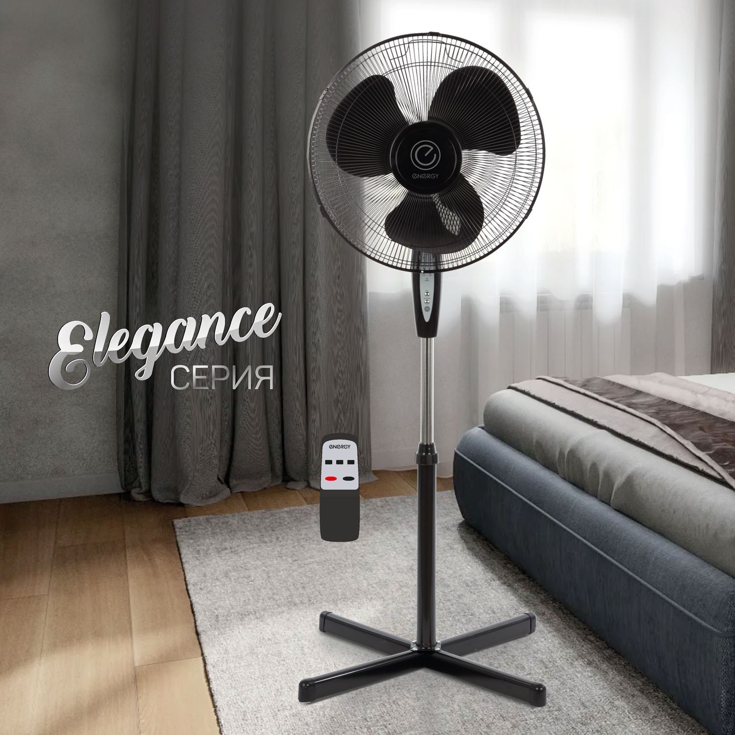 Серия Elegance Диаметр 16'' Высота 125 см 3 скорости Пульт ДУ Таймер от получаса до 7,5 часов Лучевая решетка Режим "Normal" Режим "Natural" - имитация бриза Режим "Sleep" Регулировка наклона Функция поворота Подставка 62*62 см Мощность 45 Вт 1 шт в коробке Длина шнура 126 см