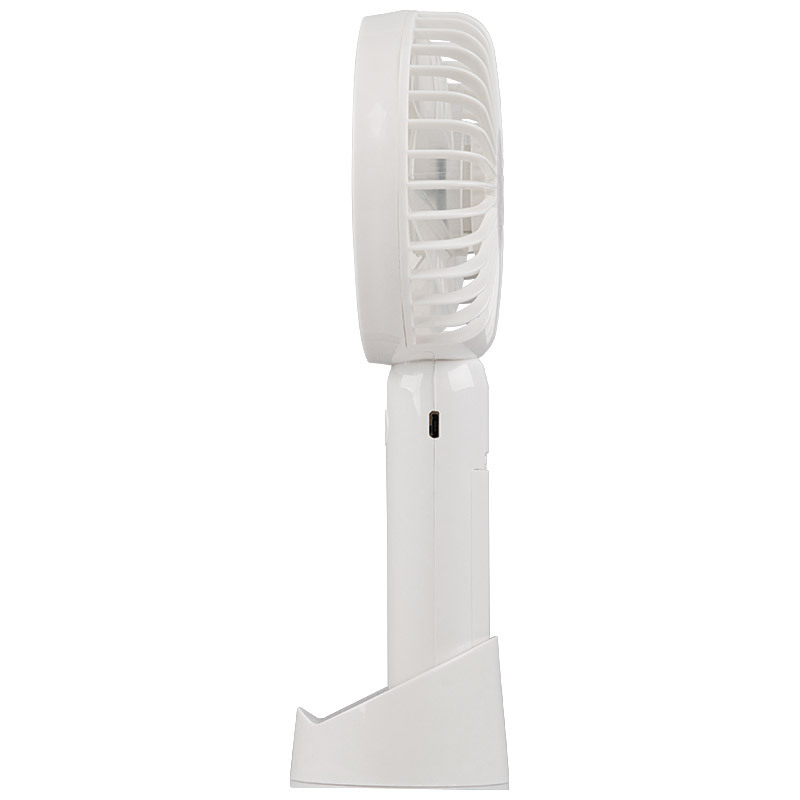 Портативный настольный USB вентилятор Для использования на столе, в комплекте съёмная подставка Работа от аккумулятора и от USB 3 скорости Тихая работа вентилятора Лёгкий вес, можно брать с собой на улицу Размер 10,5*21*5,5 см USB шнур в комплекте Время зарядки: 1-4 часа Время работы: 1-2 часа Вход: 5В - 1,0 A Выход: 5 - 9В Екмкость батареи: 800 мАч Батарея: 18650-3,7В Длина шнура USB - 20 см Мощность 4 Вт