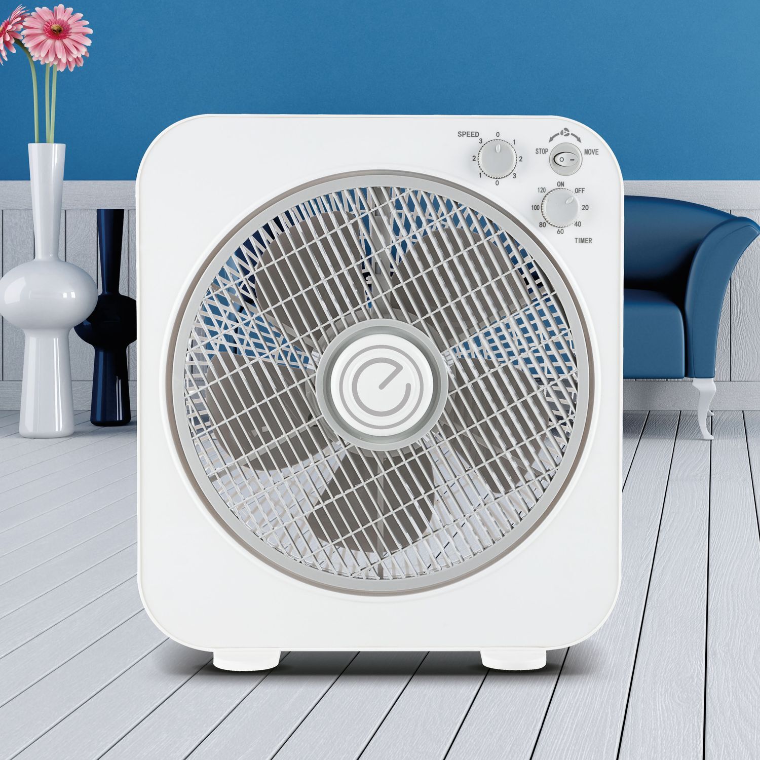 Напольный вентилятор Диаметр 12'' 3 скорости Таймер от 20 до 120 минут Новый дизайн Защитная решетка Размер вентилятора (Ш*В*Г) 40*40*14 см Мощность 40 Вт 1 шт в коробке Длина шнура 141 см