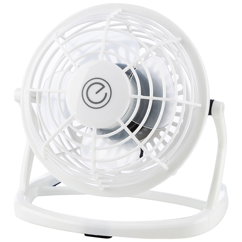 USB вентилятор Цвет белый 1 скорость Корпус из пластика Размеры: 15*9,8*15 см Регулировка наклона Длина шнура 1,1 м Мощность 2,5 Вт