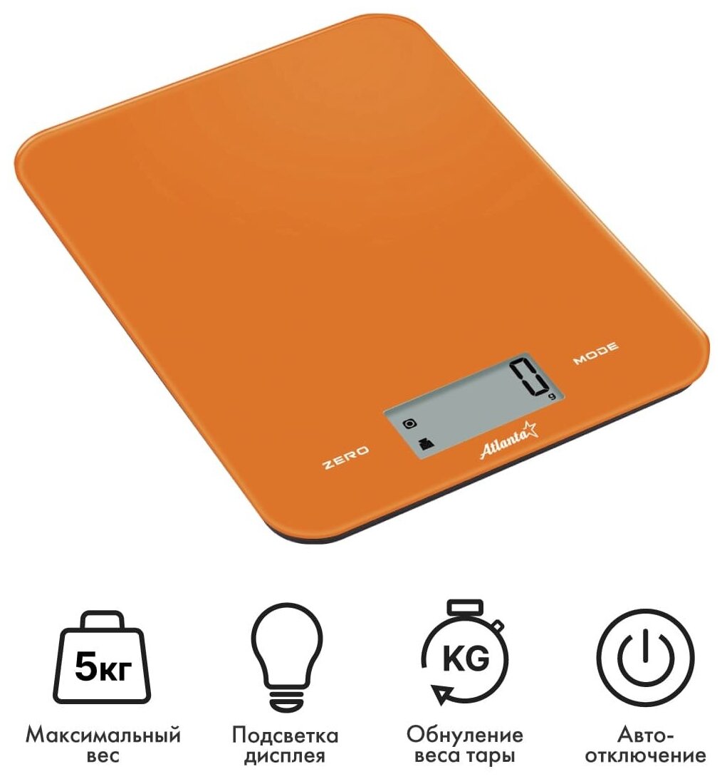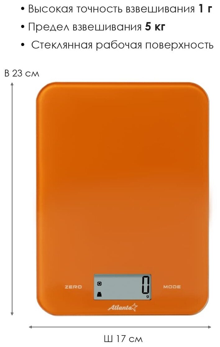 Кухонные весы. электронные, предел взвешивания 5 кг, измерение объема жидкости, тарокомпенсация, материал платформы - чашистекло, индикатор заряда батареи, автоматическое выключение. Цвет оранжевый. Тип электронные. Предел взвешивания 5 кг. Точность измерения 1 г. Функции измерение объема жидкости, тарокомпенсация. Тип элементов питания CR2032. Индикация заряда батареи есть. Индикация перегрузки есть. Автоматическое выключение есть. Конструкция тары платформа. Единицы измерения унции, граммы, фунты, миллилитры. Материал платформы стекло. Размеры (ШxГxВ) 170x230x15 мм. Вес 393 г. Дополнительная информация ножки против скольжения.