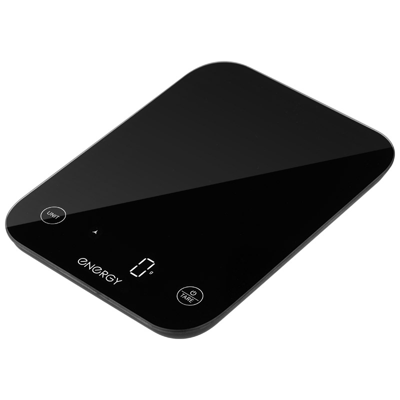 Стеклянная поверхность Размер 15*20 см Дисплей 4,5*2,1 см с подстветкой Сенсорное управление Выбор единицы измерения: грамм, килограмм, фунт Функция "Тара" Максимальная нагрузка 10 кг Цена деления 1 грамм Автоотключение Индикатор перегрузки Индикатор низкого заряда батареек Питание от батареек 2*ААА (1,5 В) Напряжение 3 В