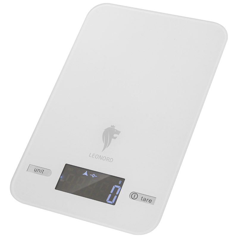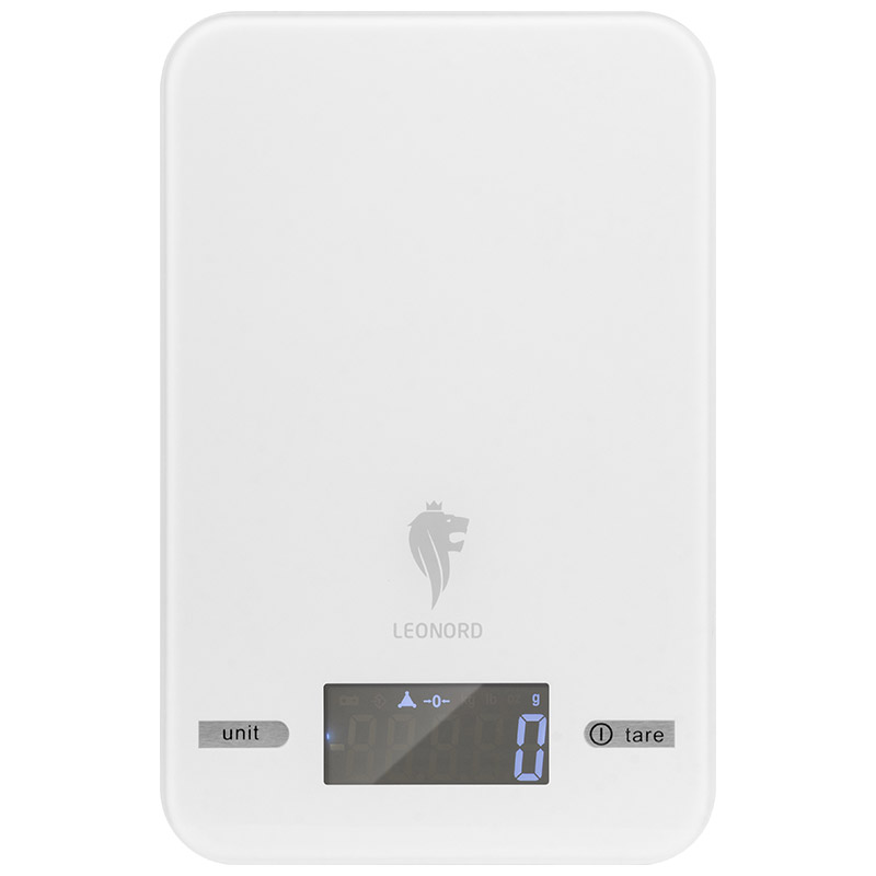 LCD дисплей с подсветкой Стеклянная поверхность 14*21,5см Максимальная нагрузка 10 кг Сенсорное управление Выбор единицы измерения: грамм, килограмм, фунт, унция Цена деления 1 грамм Функция "Тара" Автоотключение Прорезиненные ножки Индикатор перегрузки и низкого заряда батареи Питание батареек 2*CR2032 (3B)